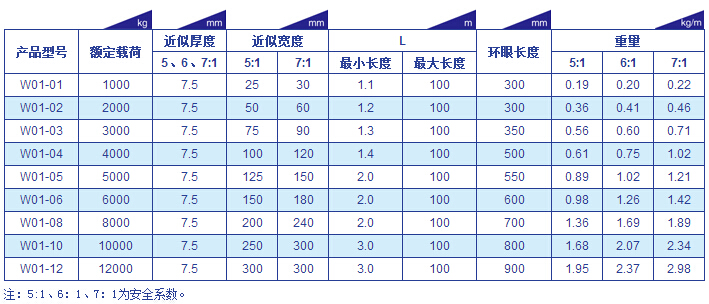 巨力W01型(環(huán)眼型)吊裝帶參數(shù)表