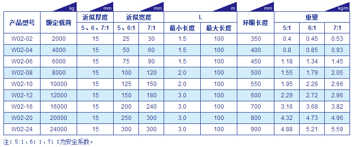 巨力W02型(重型環(huán)眼型)吊裝帶參數(shù)表